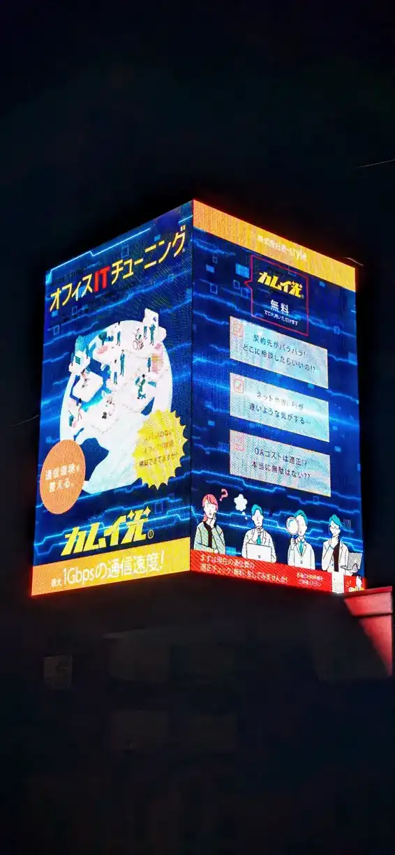 2方向に向けたLEDディスプレイが、交差点全体をカバーし、どの方向からでも目を引きます。昼夜問わず鮮明な表示で、通行者に強烈なインパクトを与え、広告メッセージを効果的に届けます。
